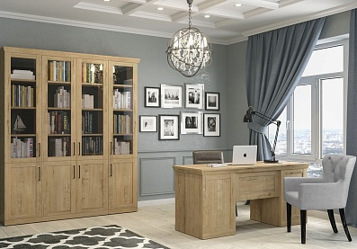 Шкаф Чарли с витриной (правый, со шпонированными полками) Серый агат