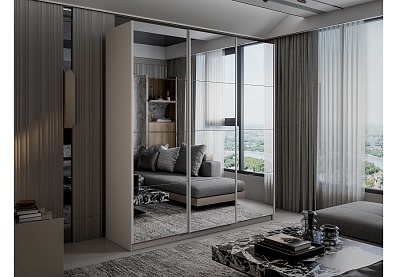 Шкаф-купе Lux 160 х 230 с зеркальными дверцами / Кашемир 160x230 Кашемир , С полками