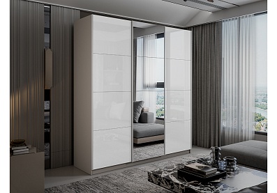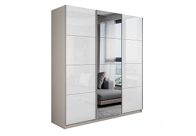 Шкаф-купе Lux 210х230х57 кашемир Белый глянец/Зеркало/Белый глянец 210x230 Кашемир , С полками