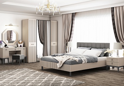 • Мебель установлена на деревянных опорах с эмалевой отделкой серого цвета.