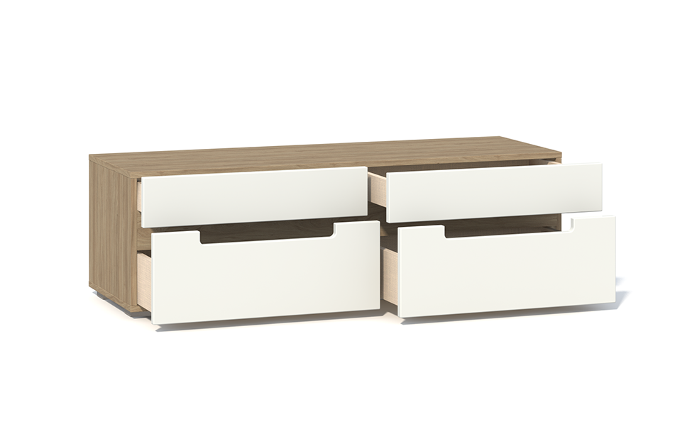 - Тумба с 4 выдвижными ящиками (два ящика друг над другом в каждом отделении тумбы);