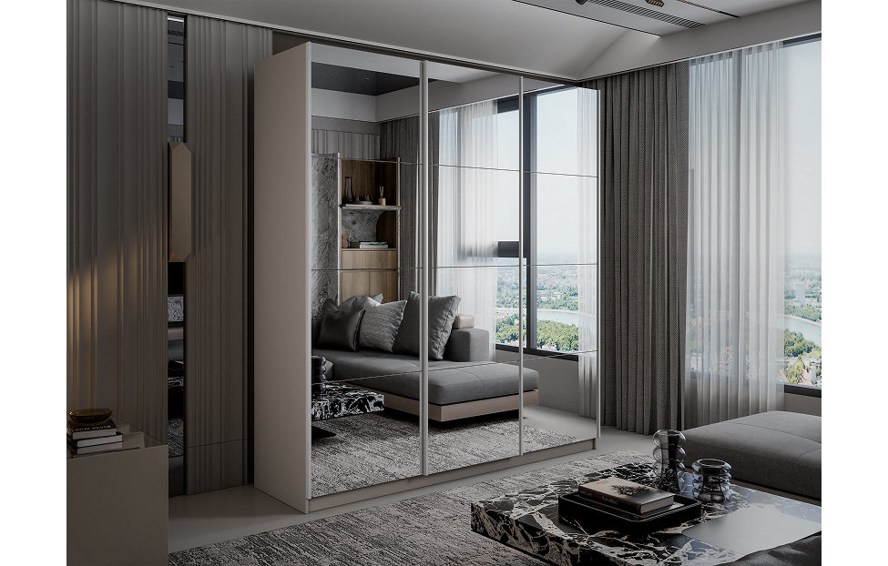 Купить Шкаф-купе Lux 210х230х57 зеркальные фасады / Кашемир в интернет-магазине мебели «Ангстрем»