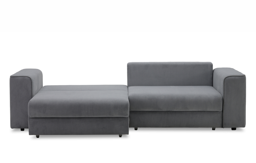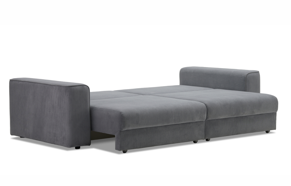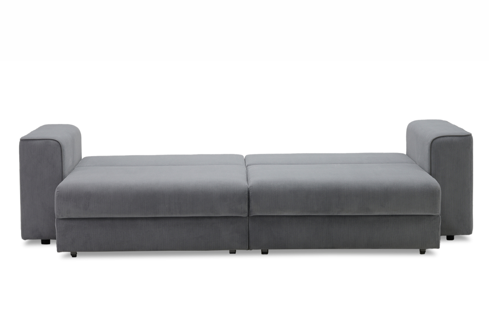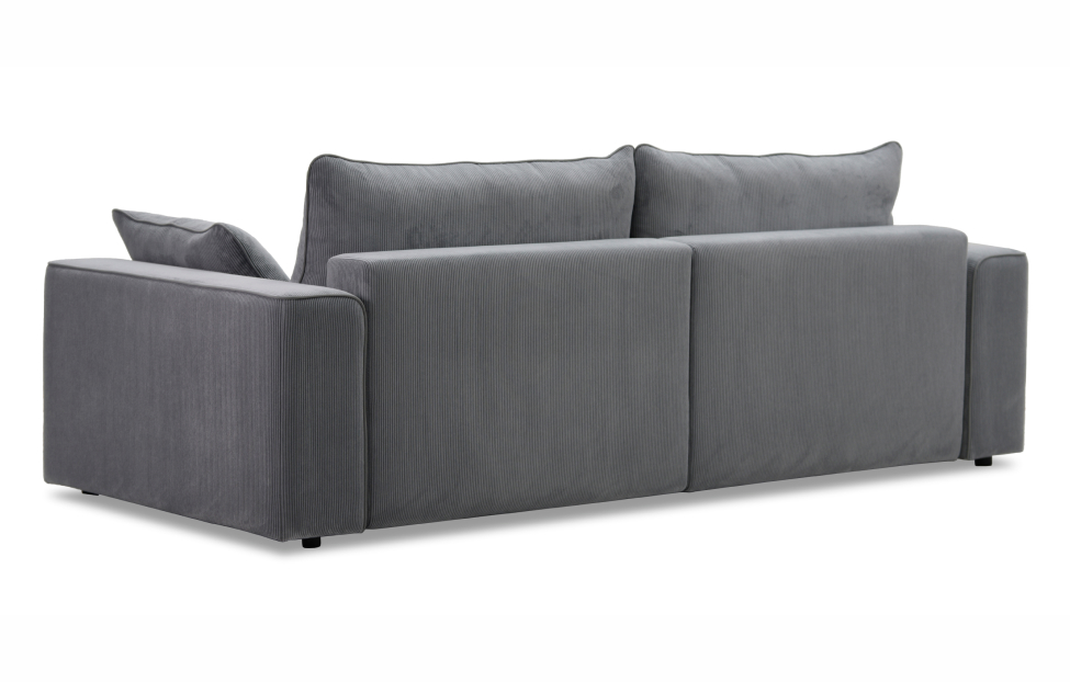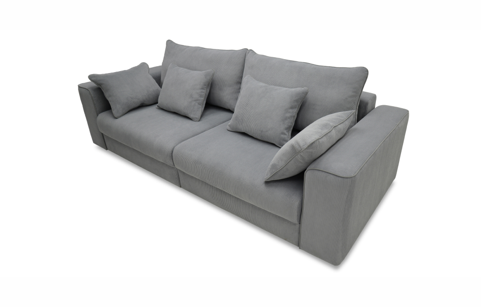 Диван выполнен в современном стиле, который будет гармонично смотреться в любом интерьере. Обивка из велюра c вертикальной текстурой актуального серого оттенка приятна на ощупь и легко чистится.